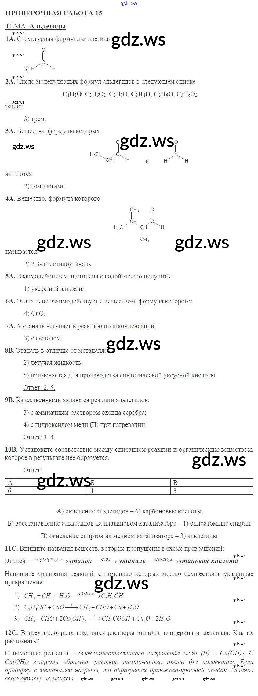 Готовый и полный ответ к Проверочные работы - Химии 10 класс Габриелян Тетрадь для оценки качества знаний ФГОС