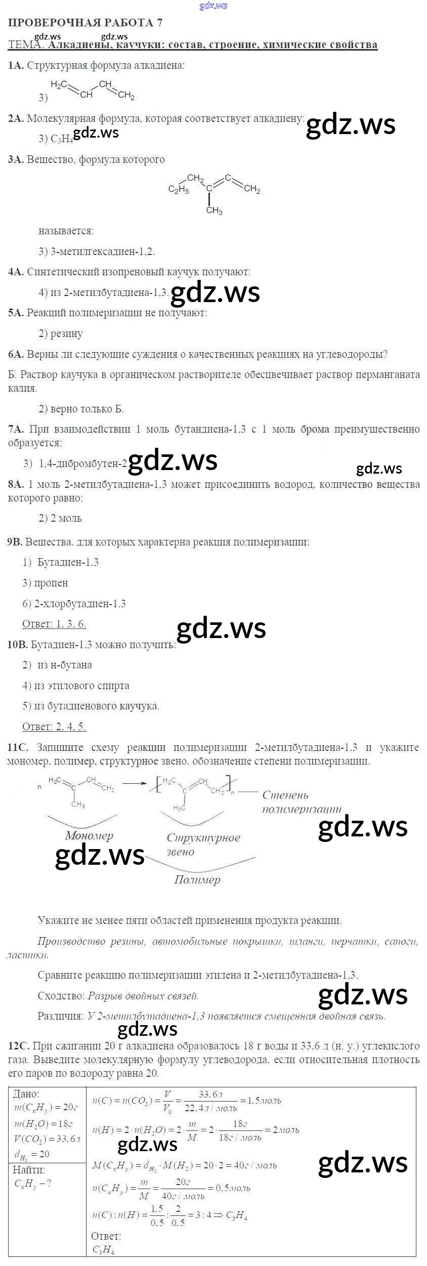 Готовый и полный ответ к Проверочные работы - Химии 10 класс Габриелян Тетрадь для оценки качества знаний ФГОС