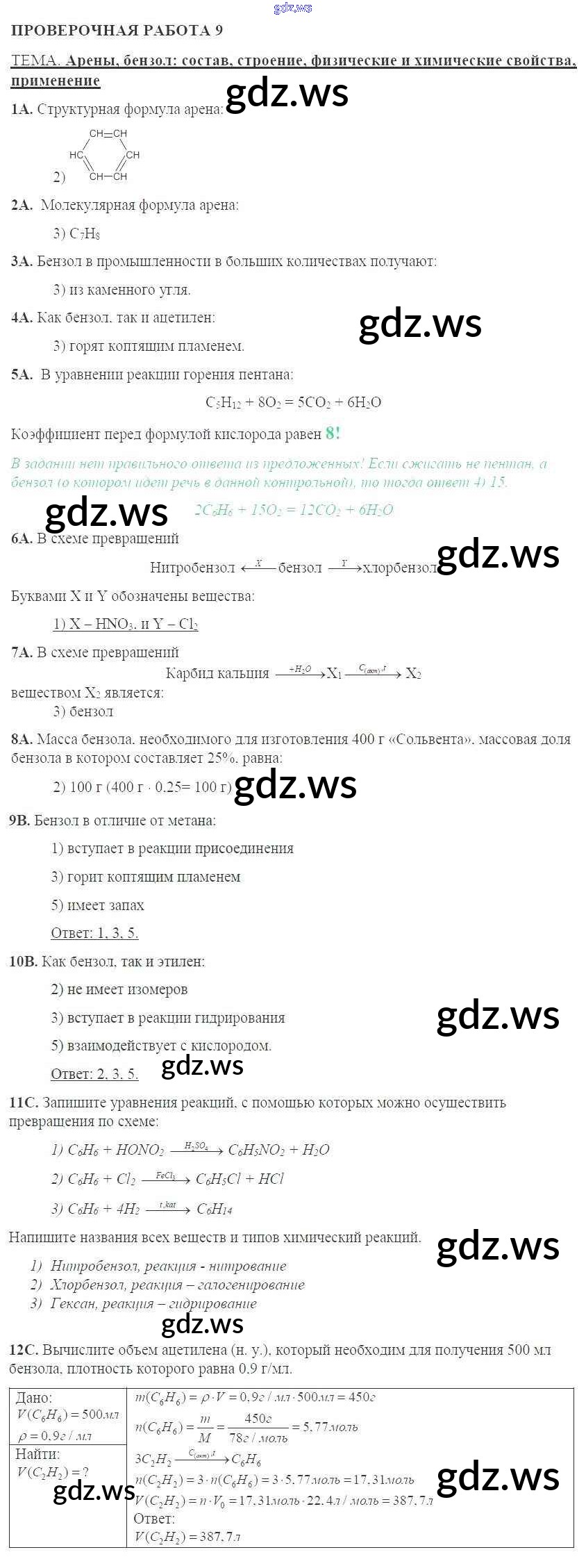 Готовый и полный ответ к Проверочные работы - Химии 10 класс Габриелян Тетрадь для оценки качества знаний ФГОС
