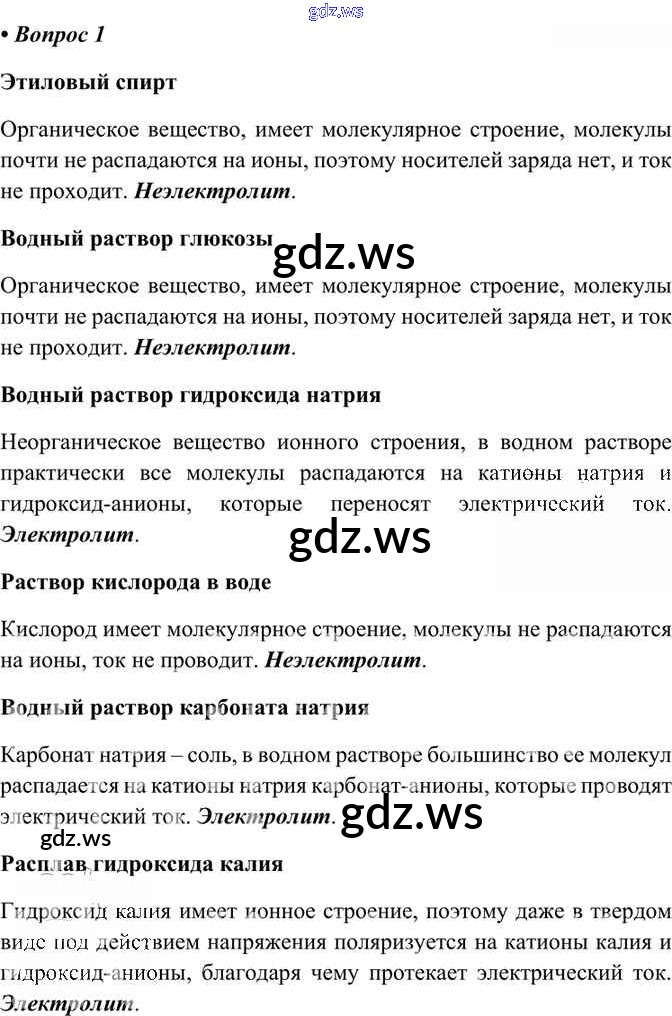 Готовый и полный ответ к §15. Электролитическая диссоциация - Химии 11 класс Габриелян Учебник Углубленный уровень Вертикаль ФГОС