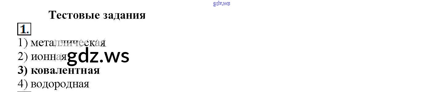 Готовый и полный ответ к Тестовые задания § 8. Металлическая связь. Водородная связь - Химии 11 класс Рудзитис Учебник Базовый уровень ФГОС