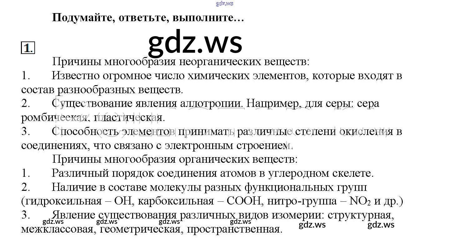 Готовый и полный ответ к Подумайте, ответьте, выполните § 11. Причины многообразия веществ - Химии 11 класс Рудзитис Учебник Базовый уровень ФГОС