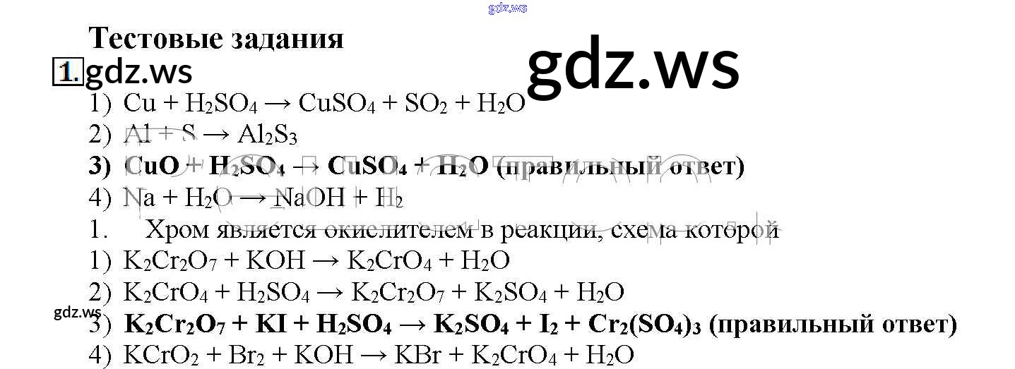 Готовый и полный ответ к Тестовые задания § 12. Классификация химических реакций - Химии 11 класс Рудзитис Учебник Базовый уровень ФГОС
