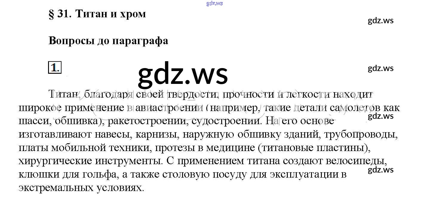 Готовый и полный ответ к Вопросы до параграфа § 31. Титан и Хром - Химии 11 класс Рудзитис Учебник Базовый уровень ФГОС