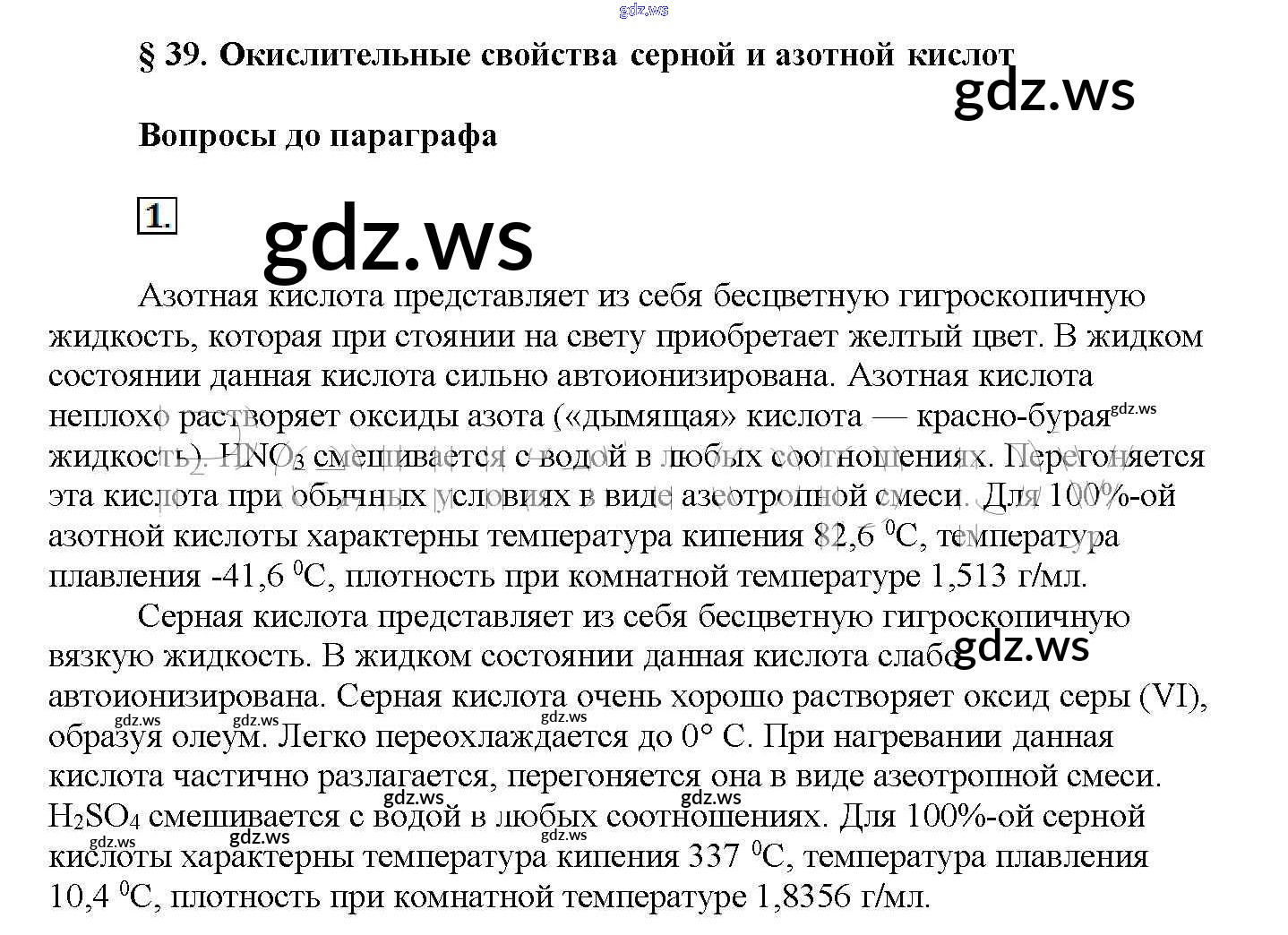 Готовый и полный ответ к Вопросы до параграфа § 39. Окислительные свойства серной и азотной кислот - Химии 11 класс Рудзитис Учебник Базовый уровень ФГОС