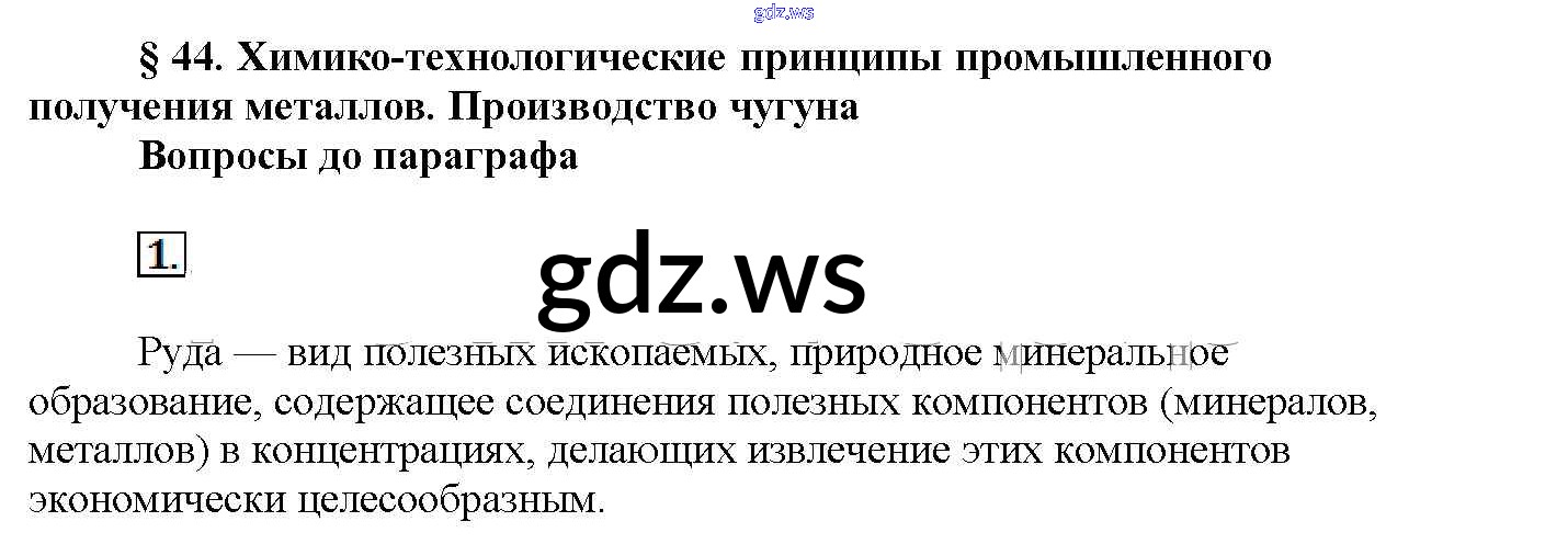 Готовый и полный ответ к Вопросы до параграфа § 44. Химико-технологические принципы промышленного получения металлов. Производство чугуна - Химии 11 класс Рудзитис Учебник Базовый уровень ФГОС