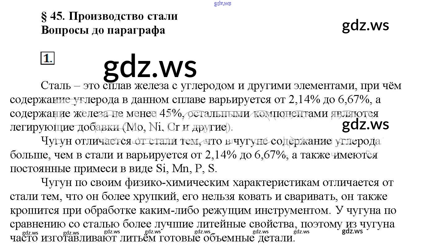 Готовый ответ Вопросы до параграфа § 45. Производство стали - Химии 11 класс Рудзитис Учебник Базовый уровень ФГОС