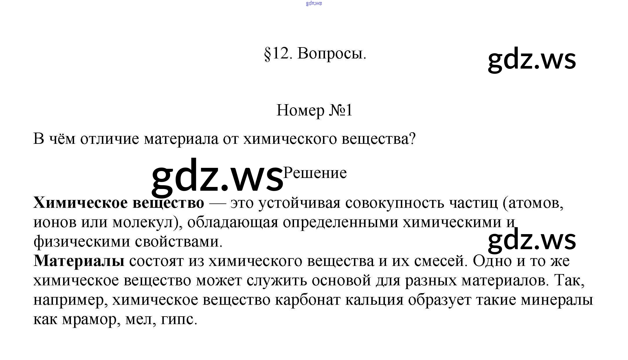 Готовый и полный ответ к Вопросы §12. Чистые вещества и смеси - Химии 7 класс Габриелян Учебник