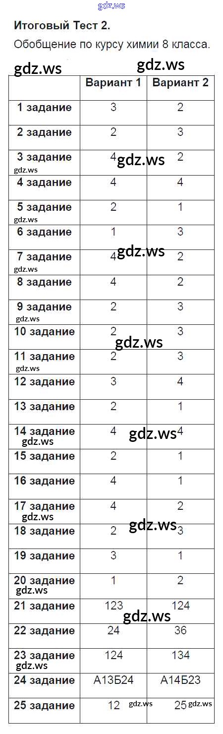 Готовый ответ Итоговый тест Тесты - Химии 8 класс Боровских Тесты УМК ФГОС