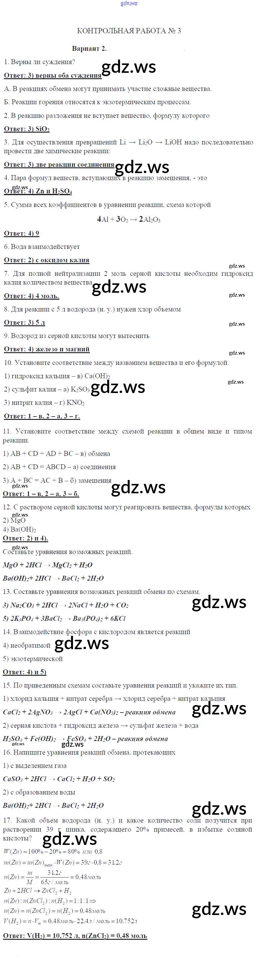Готовый и полный ответ к КР-3. Варианты Контрольные работы - Химии 8 класс Габриелян Контрольные работы УМК ФГОС