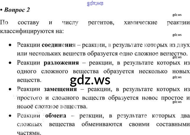 Готовый и полный ответ к §11. Типы химических реакций - Химии 8 класс Габриелян Учебник ФГОС