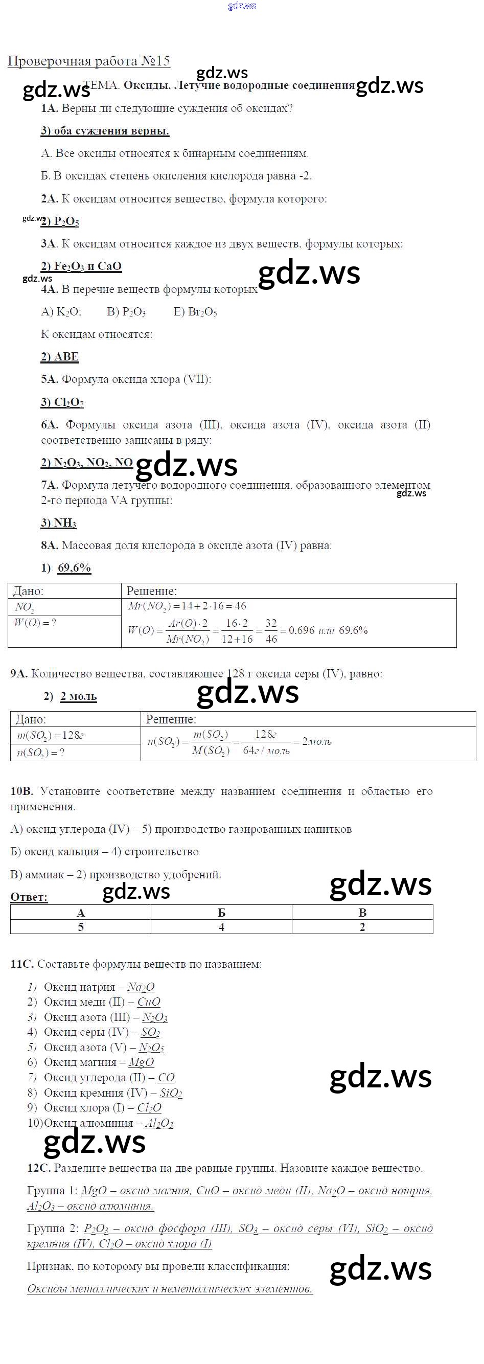 Готовый и полный ответ к Проверочные работы - Химии 8 класс Габриелян Тетрадь для оценки качества знаний Вертикаль ФГОС