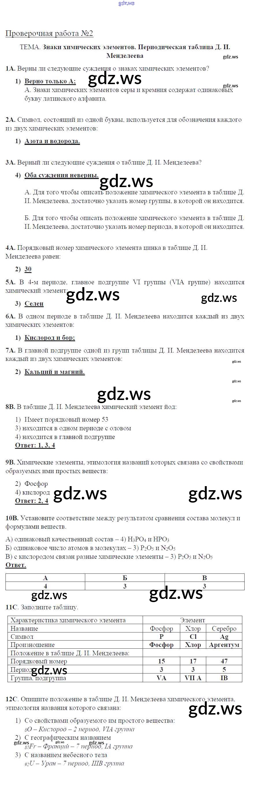 Готовый и полный ответ к Проверочные работы - Химии 8 класс Габриелян Тетрадь для оценки качества знаний Вертикаль ФГОС