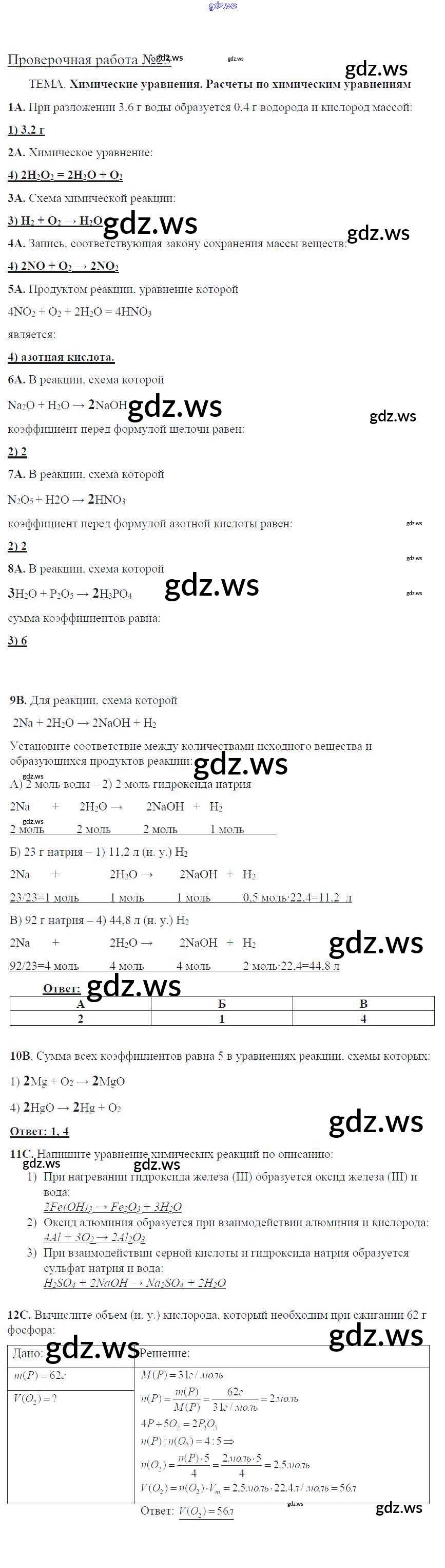 Готовый и полный ответ к Проверочные работы - Химии 8 класс Габриелян Тетрадь для оценки качества знаний Вертикаль ФГОС