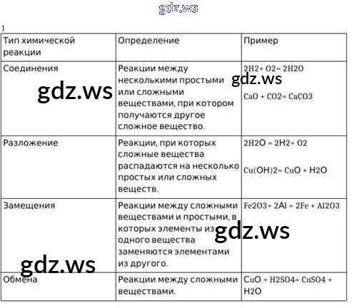 Готовый и полный ответ к §20. Типы химических реакций - Химии 8 класс Кузнецова Учебник Алгоритм успеха ФГОС
