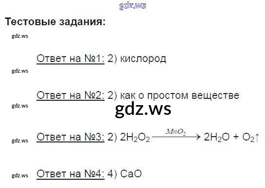Готовый и полный ответ к Тестовые задания. Параграфы Новое издание - Химии 8 класс Рудзитис Учебник УМК ФГОС