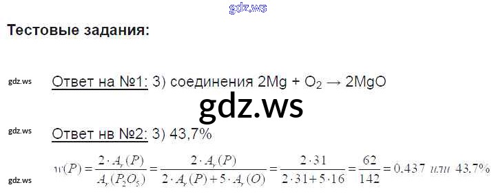 Готовый и полный ответ к Тестовые задания. Параграфы Новое издание - Химии 8 класс Рудзитис Учебник УМК ФГОС