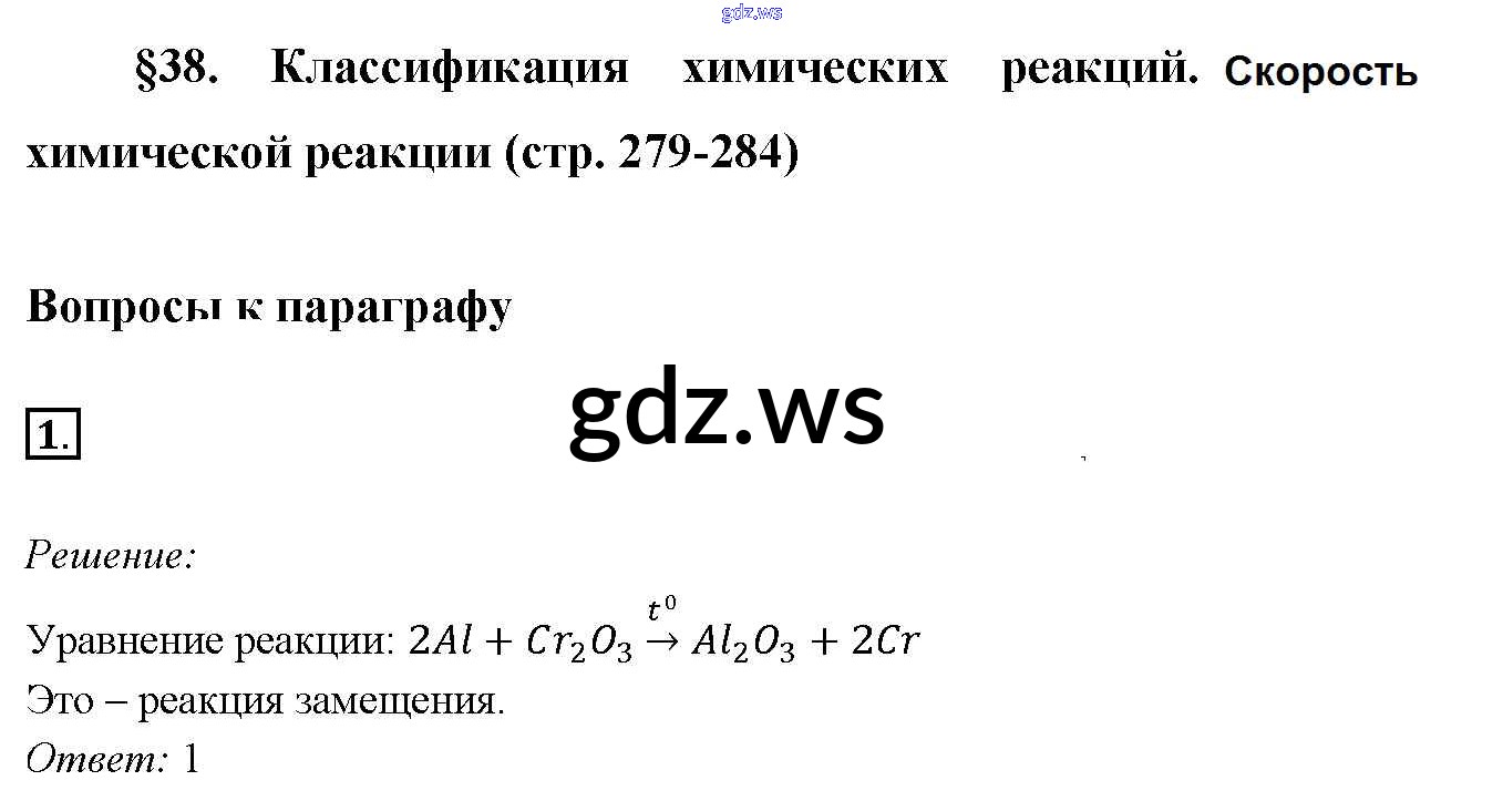 Готовый ответ §38. Классификация химических реакций. Скорость химической реакции  - Химии 9 класс Габриелян Учебник  Вертикаль ФГОС