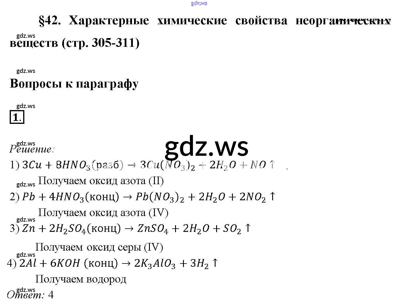 Готовый и полный ответ к §42. Характерные химические свойства неорганических веществ - Химии 9 класс Габриелян Учебник Вертикаль ФГОС