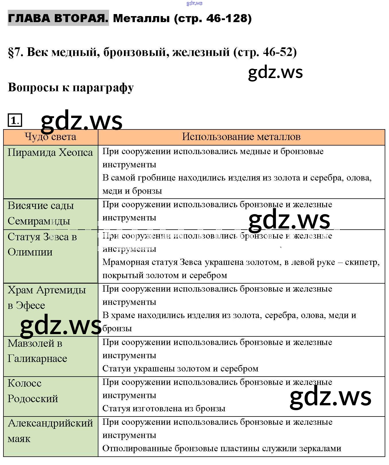Готовый и полный ответ к §7. Век медный, бронзовый, железный - Химии 9 класс Габриелян Учебник Вертикаль ФГОС