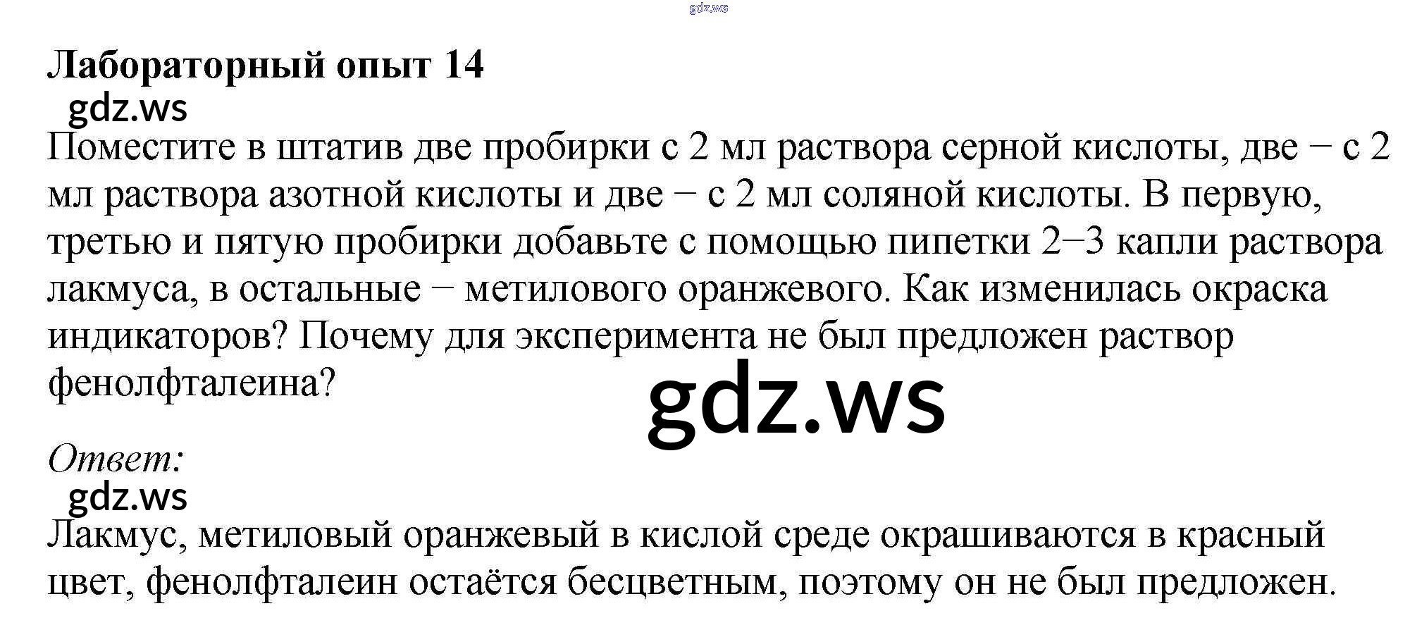 Готовый и полный ответ к Лабораторные опыты - Химии 9 класс Габриелян Учебник ФГОС