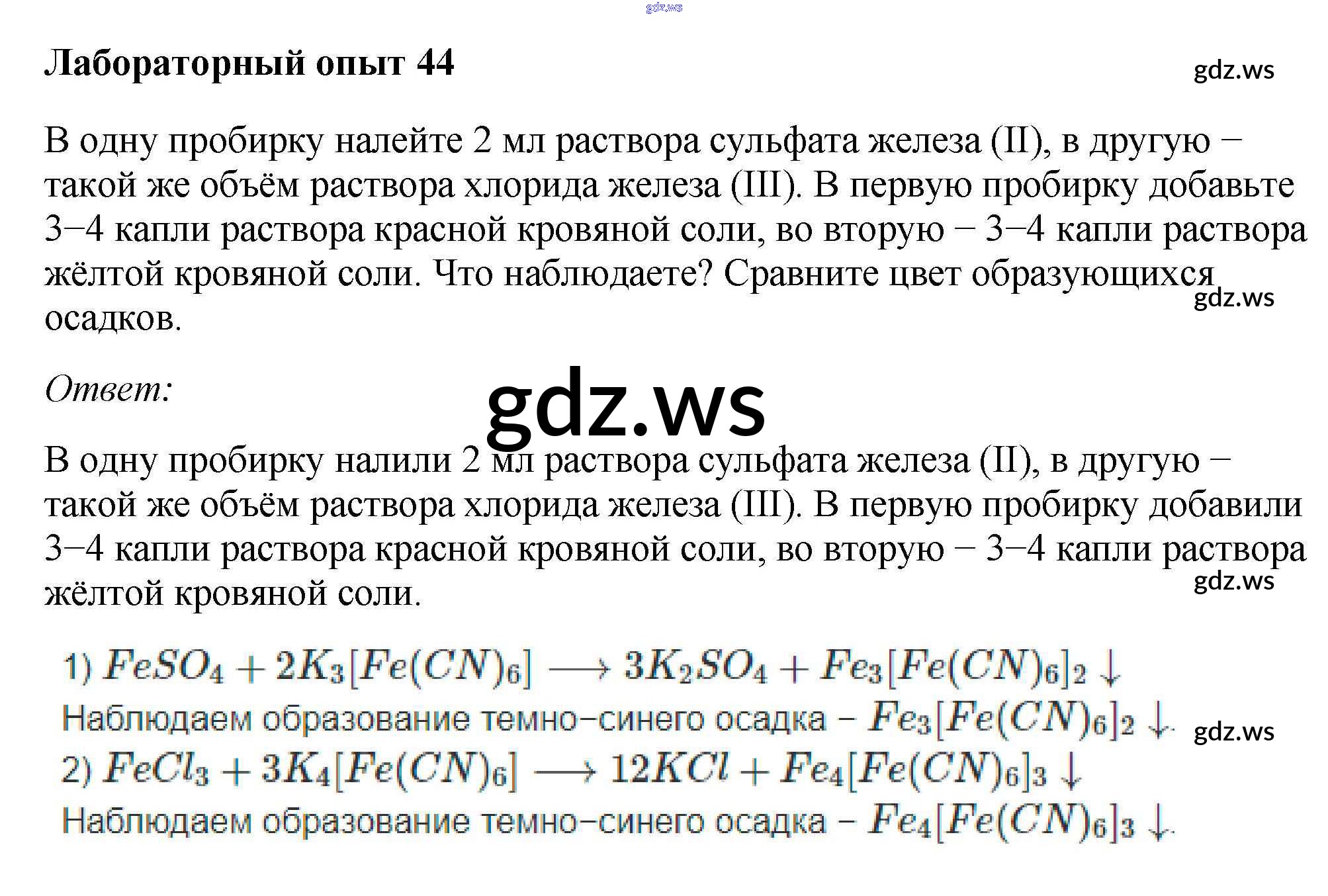 Готовый и полный ответ к Лабораторные опыты - Химии 9 класс Габриелян Учебник ФГОС