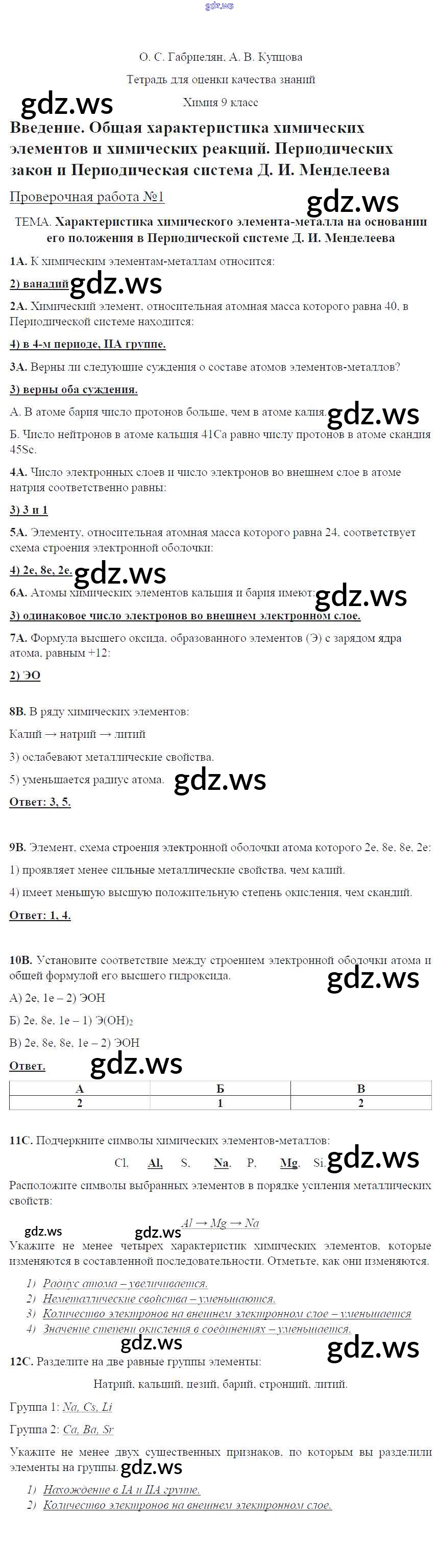 Готовый и полный ответ к Проверочные работы - Химии 9 класс Габриелян Тетрадь для оценки качества знаний Вертикаль ФГОС