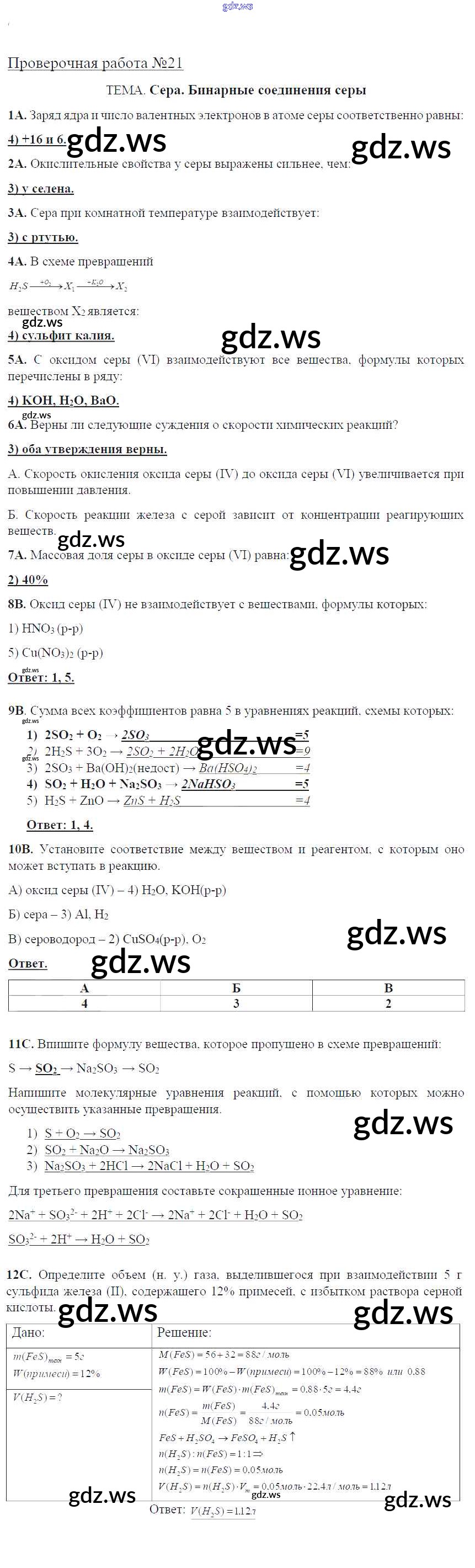 проверочная работа / пр-21. Сера. Бинарные соединения серы