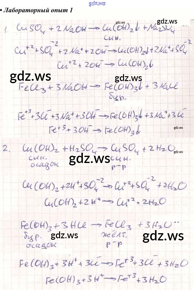 Готовый и полный ответ к Лабораторные опыты §10. Основания как электролиты - Химии 9 класс Кузнецова Учебник Алгоритм успеха ФГОС