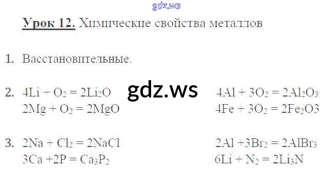 Готовый и полный ответ к Урок 12. Химические свойства металлов - Химии 9 класс Микитюк Рабочая тетрадь УМК ФГОС