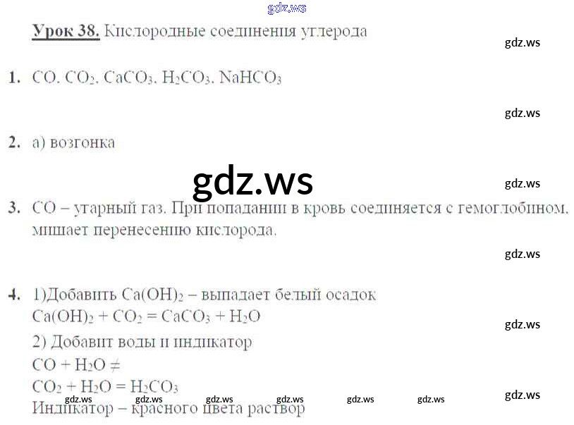 Готовый ответ Урок 38. Кислородные соединения углерода - Химии 9 класс Микитюк Рабочая тетрадь УМК ФГОС