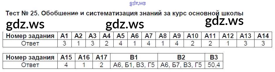 Тест №25. Обобщение и систематизация знаний за курс основной школы