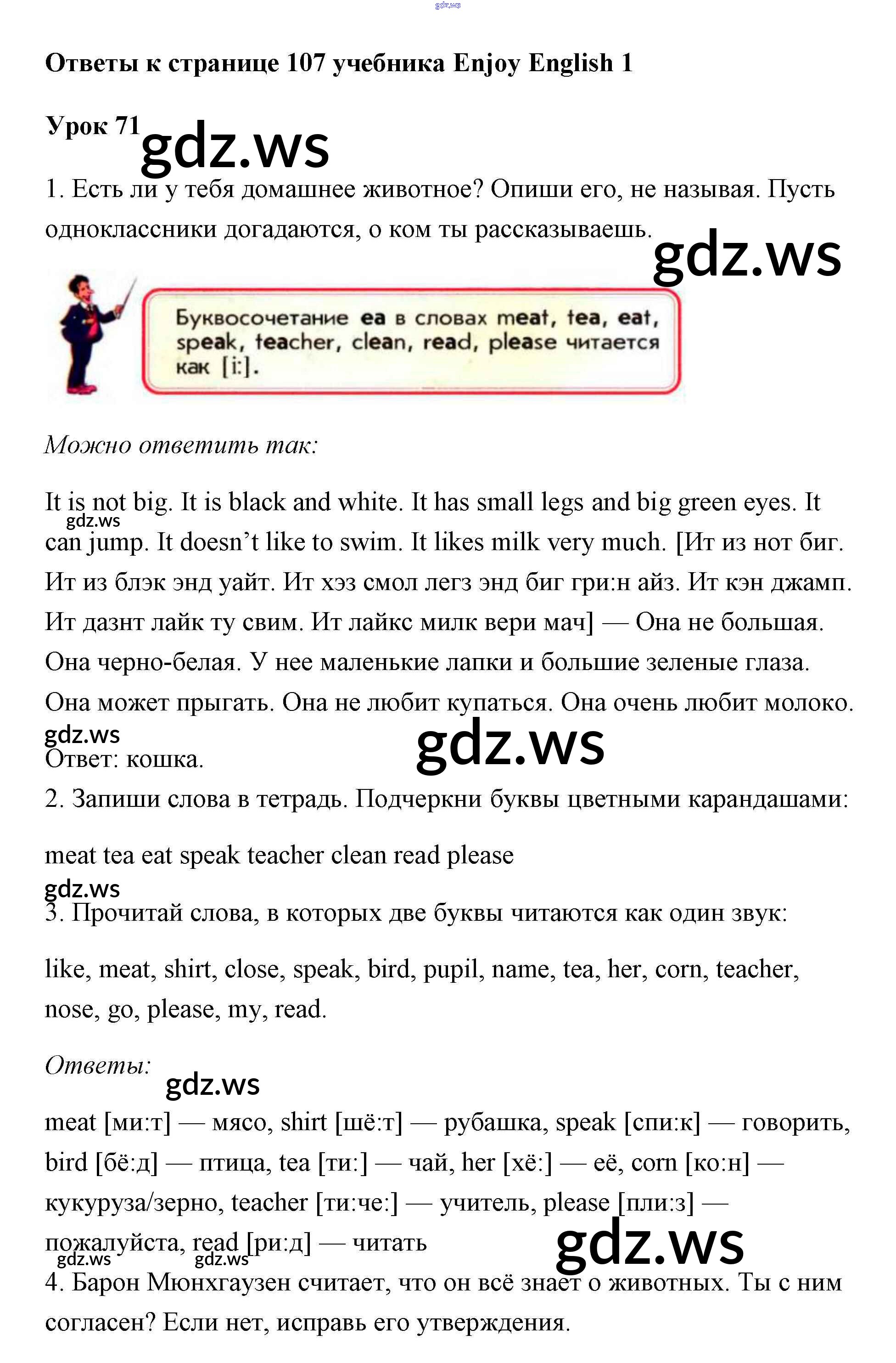 Готовый и полный ответ к Страницы - Английскому языку 1 класс Биболетова Учебник Enjoy English