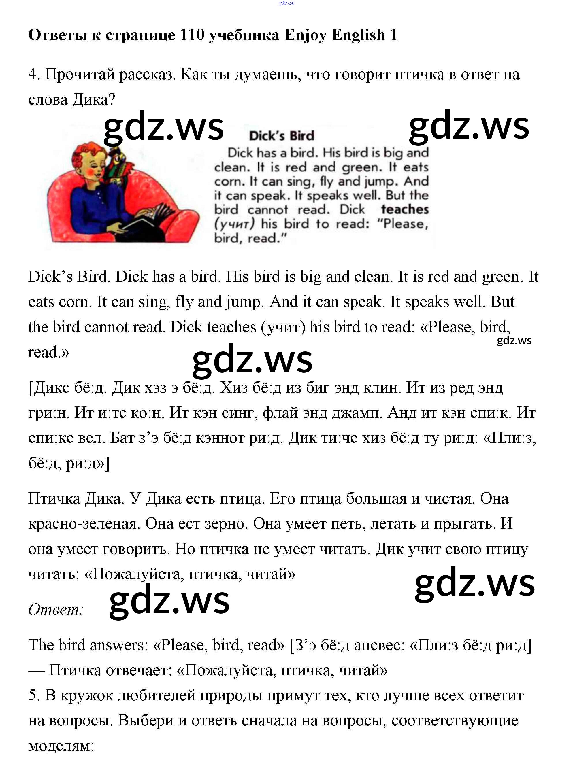 Готовый и полный ответ к Страницы - Английскому языку 1 класс Биболетова Учебник Enjoy English