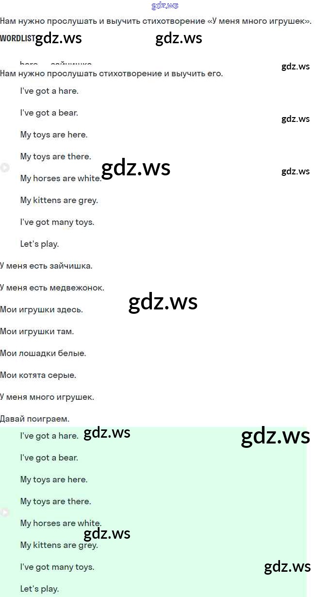 Готовый ответ Страницы - Английскому языку 1 класс Верещагина Учебник Английский для школьников