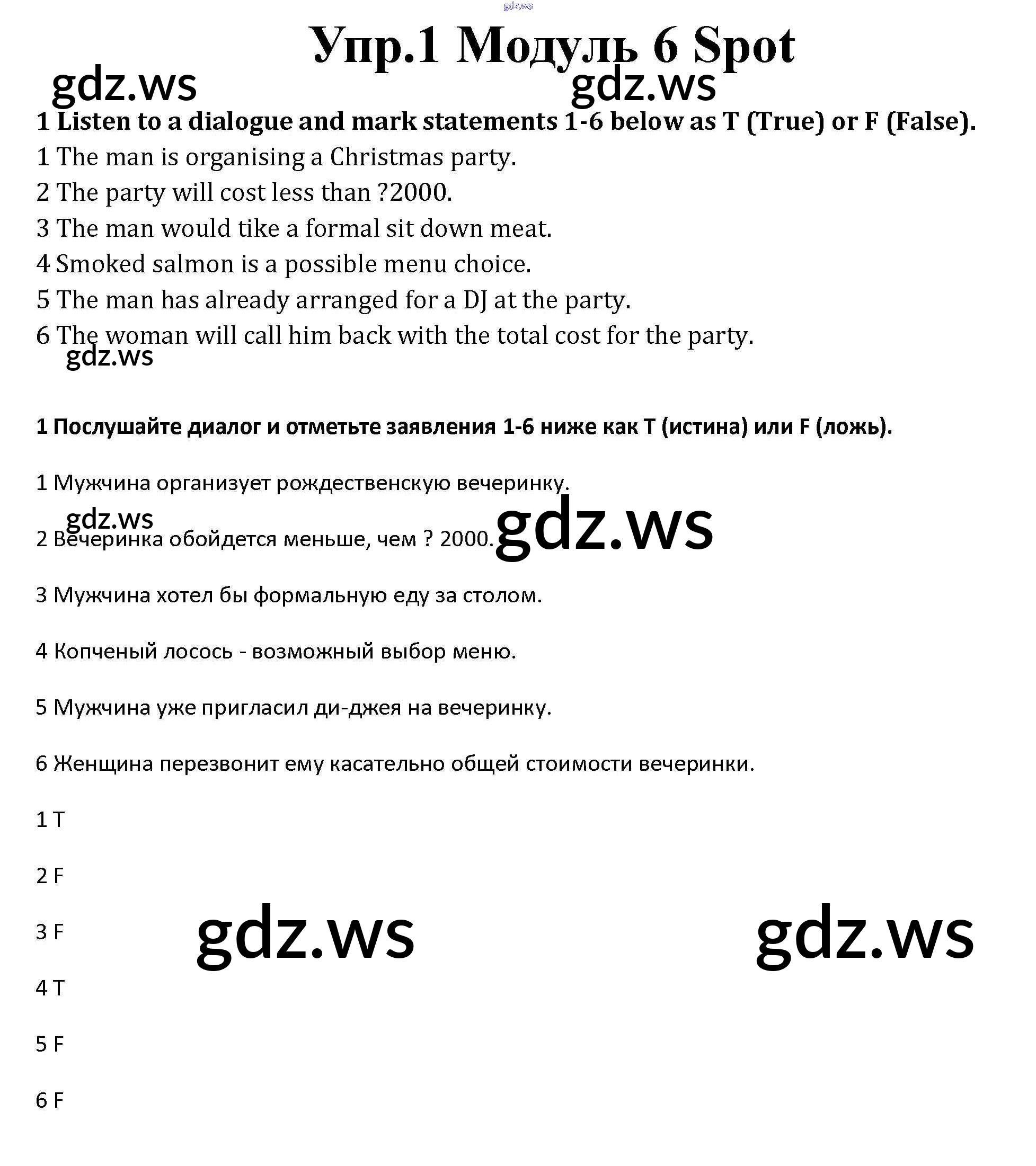 Готовый и полный ответ к Spotlight on Exams Module 6 - Английскому языку 10 класс Афанасьева Рабочая тетрадь Базовый уровень Spotlight ФГОС