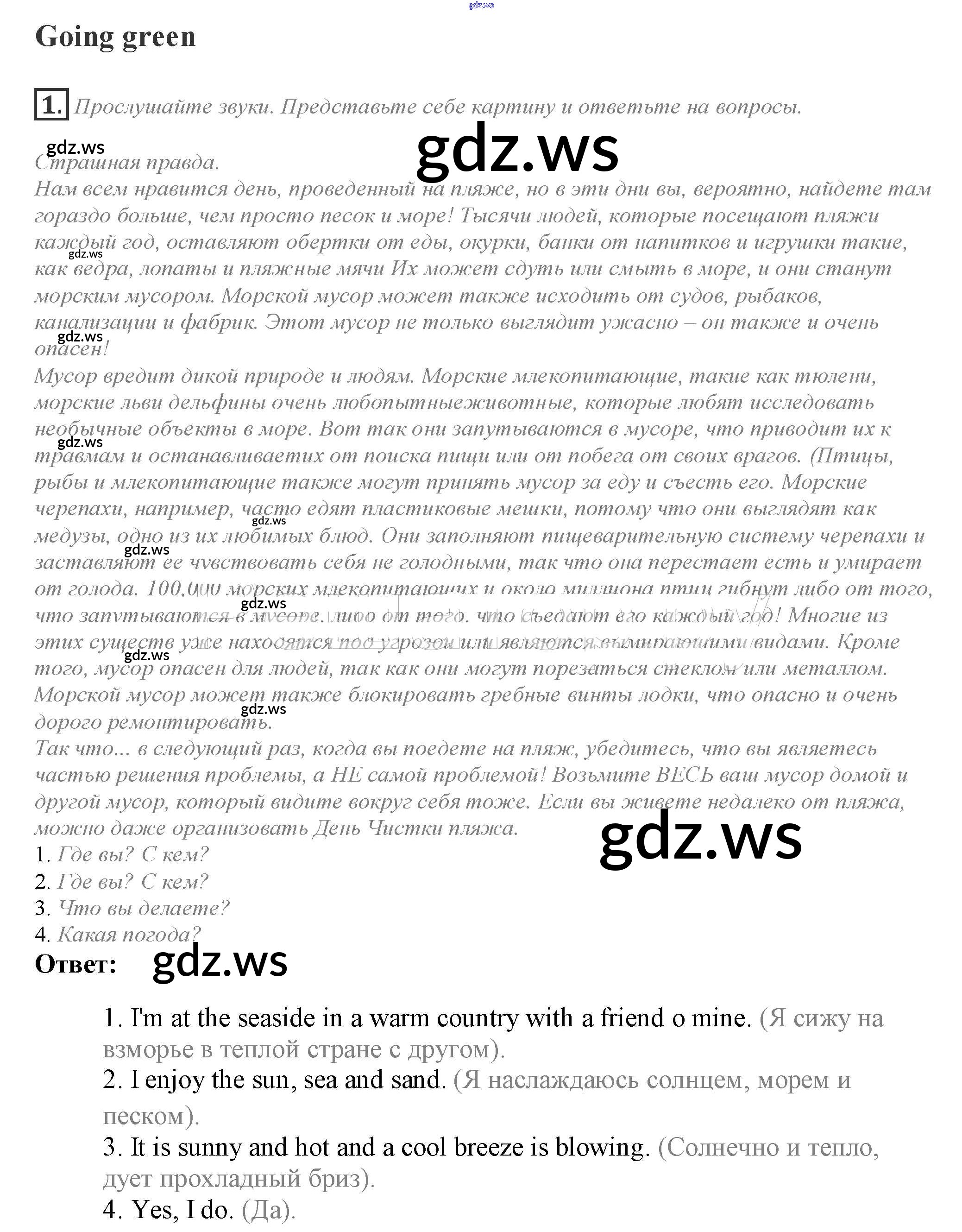 Готовый и полный ответ к Going green Module 5 - Английскому языку 10 класс Афанасьева Учебник Spotlight ФГОС