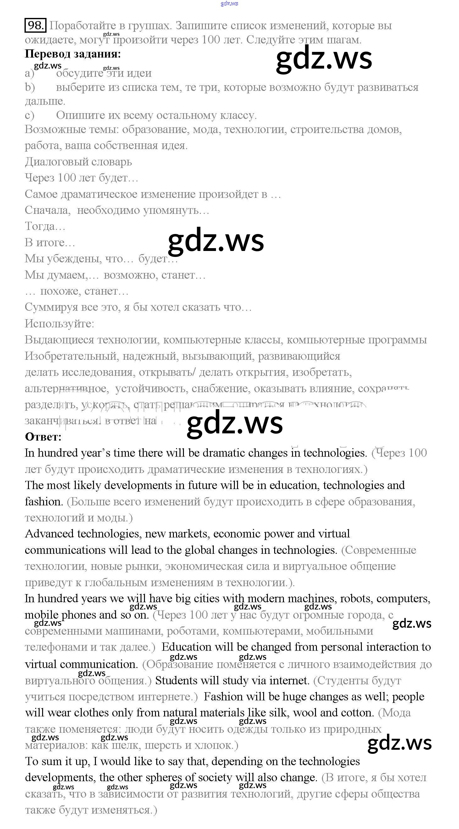 Готовый и полный ответ к Unit 3. Civilisation and progress - Английскому языку 10 класс Биболетова Учебник Enjoy English ФГОС