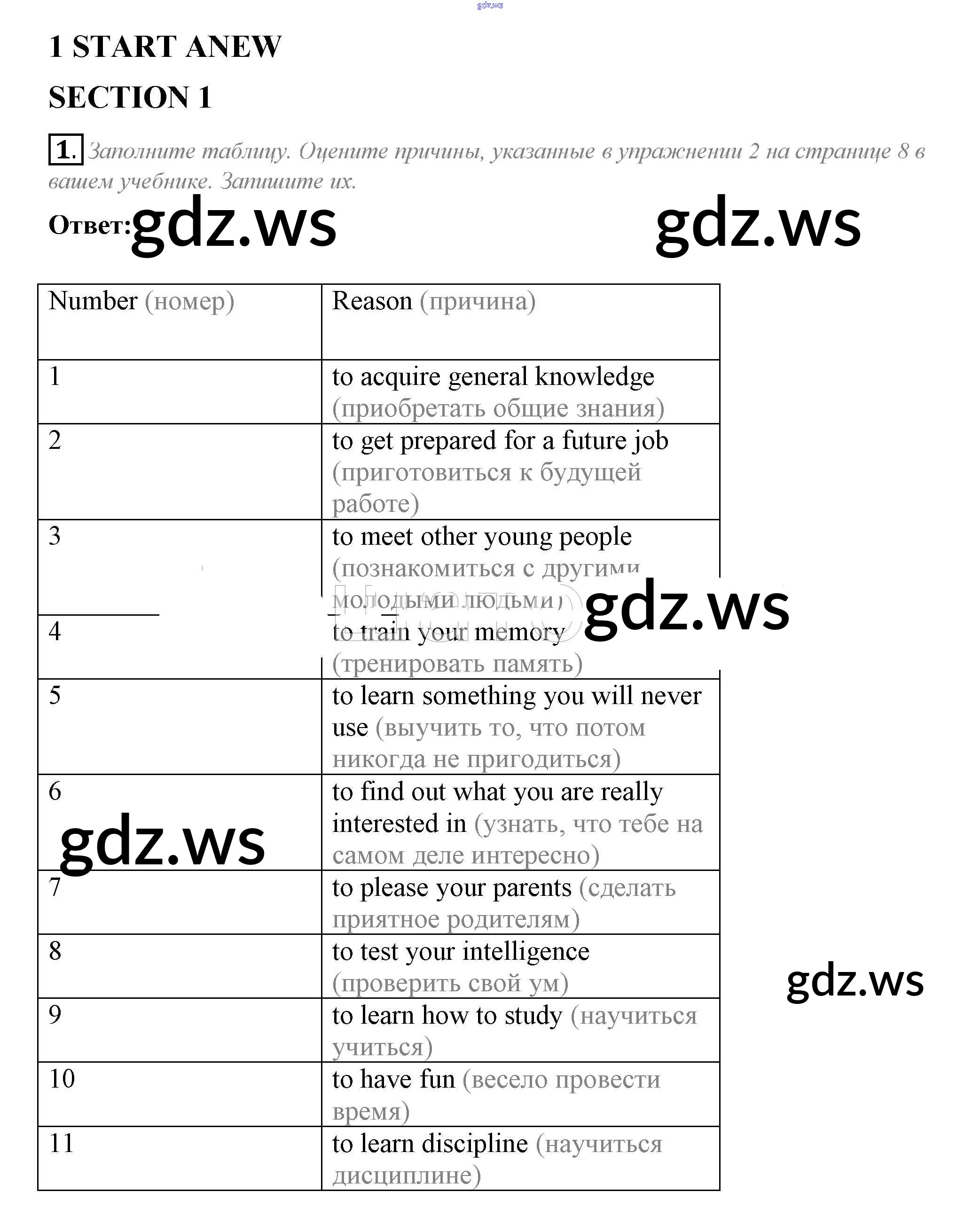 Готовый и полный ответ к Section 1 Unit 1. Start a new - Английскому языку 10 класс Биболетова Рабочая тетрадь Enjoy English ФГОС