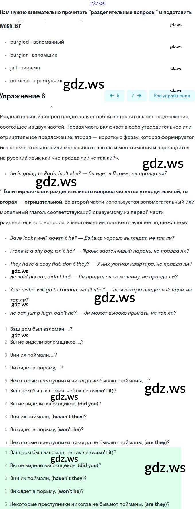 Номера упражнений: