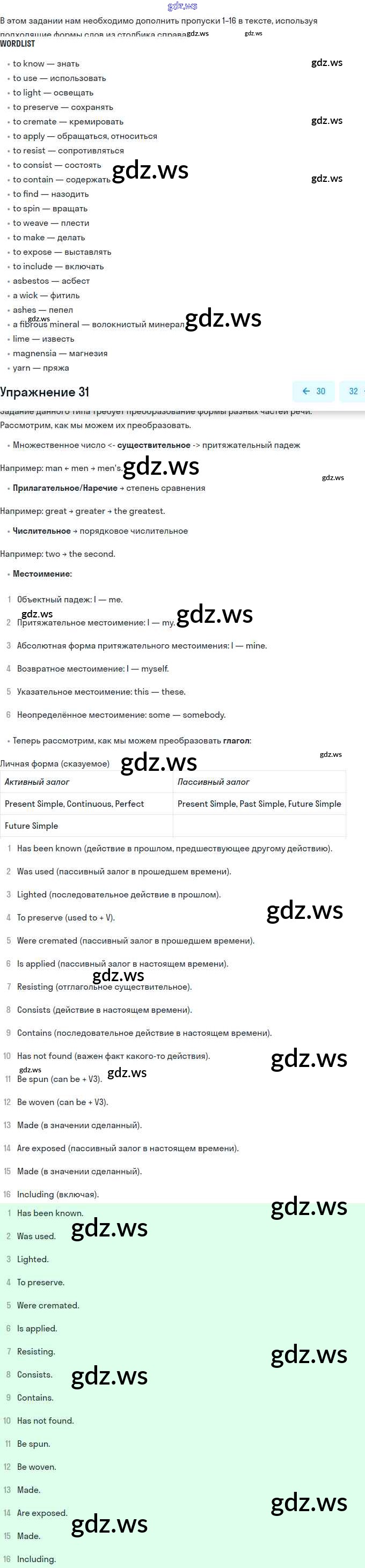Номера упражнений: