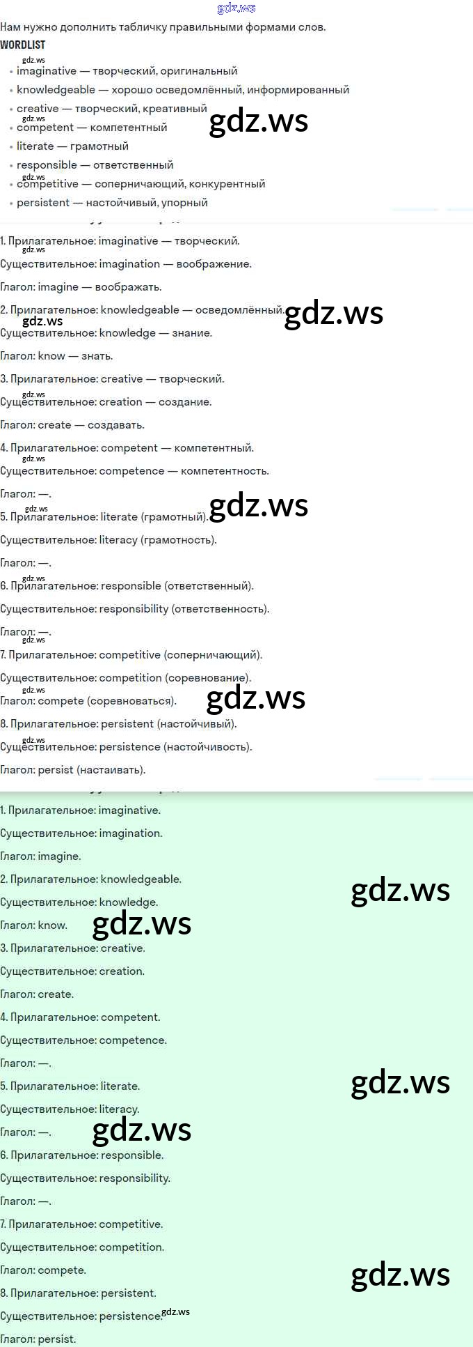 Номера упражнений: