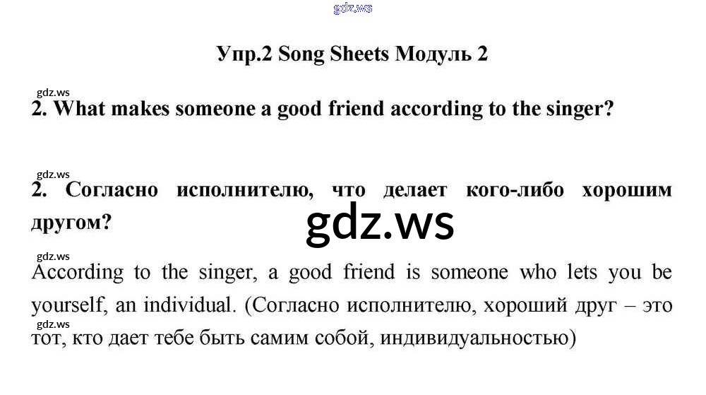 Готовый ответ Module 2 Song Sheets - Английскому языку 11 класс Эванс Учебник Spotlight ФГОС