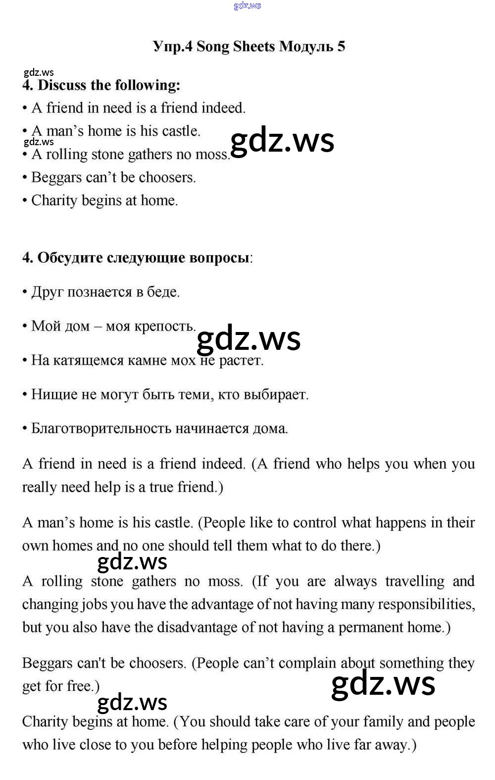 Готовый ответ Module 5 Song Sheets - Английскому языку 11 класс Эванс Учебник Spotlight ФГОС