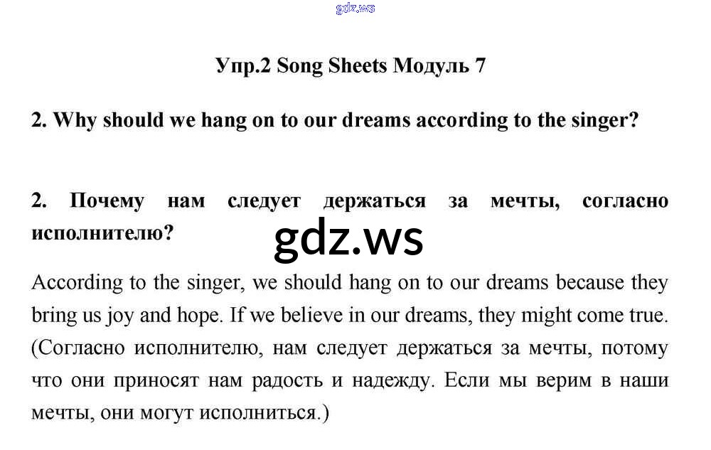 Готовый и полный ответ к Module 7 Song Sheets - Английскому языку 11 класс Эванс Учебник Spotlight ФГОС