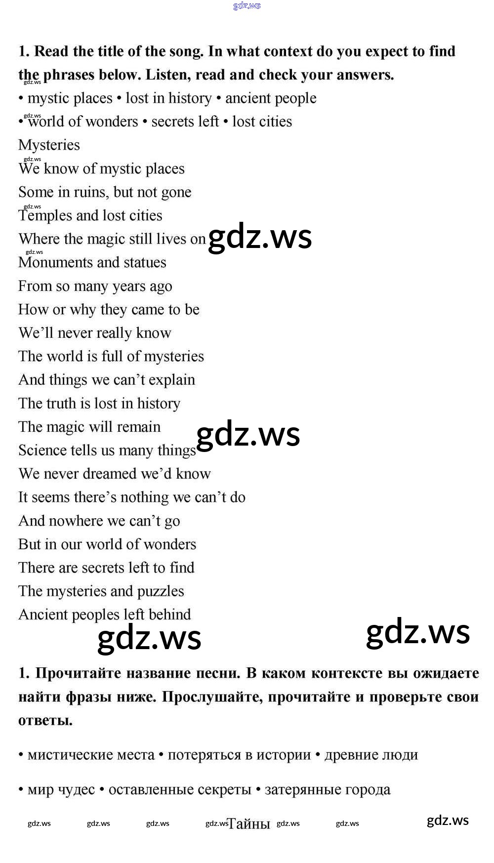 Готовый и полный ответ к Module 8 Song Sheets - Английскому языку 11 класс Эванс Учебник Spotlight ФГОС