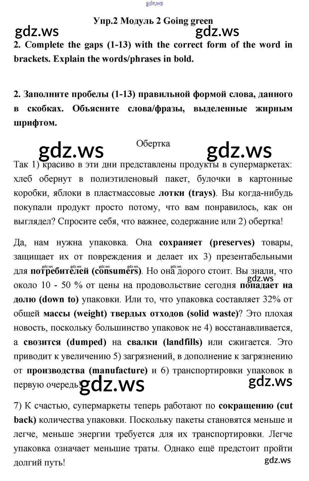 Готовый и полный ответ к Going green Module 2 - Английскому языку 11 класс Эванс Учебник Spotlight ФГОС
