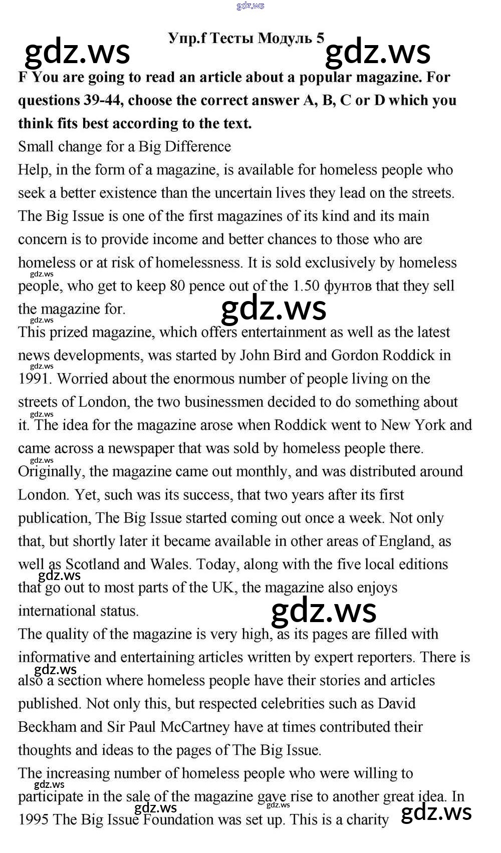 Готовый ответ Тесты Module 5 - Английскому языку 11 класс Эванс Учебник Spotlight ФГОС