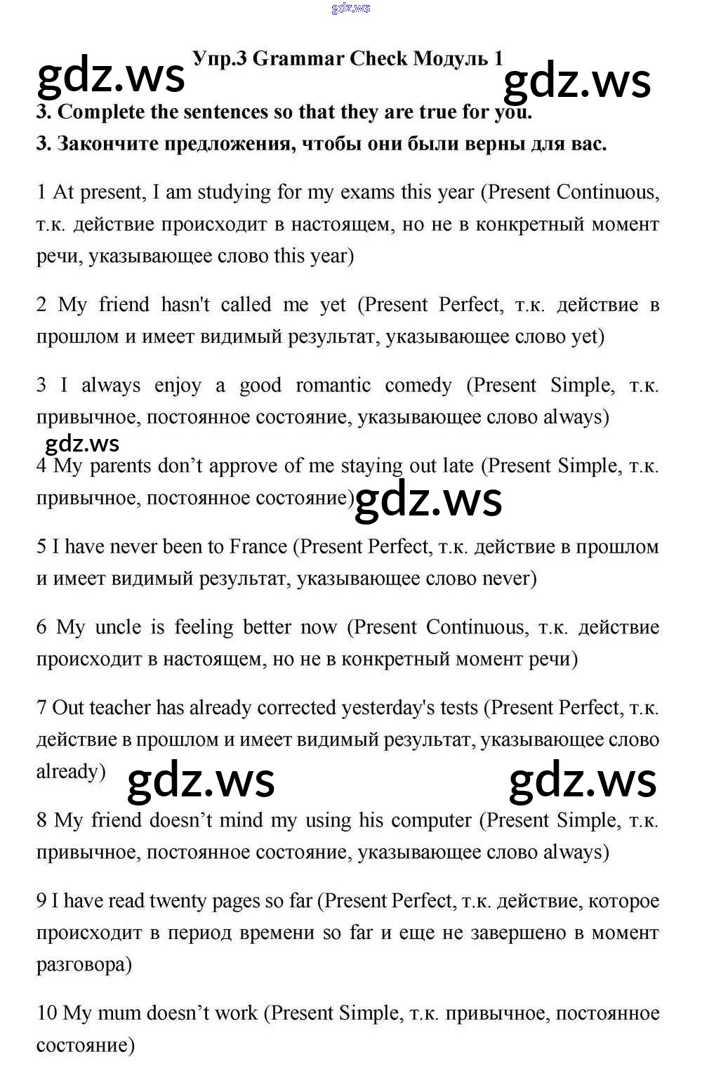 Готовый и полный ответ к Module 1 Grammar Check - Английскому языку 11 класс Эванс Учебник Spotlight ФГОС