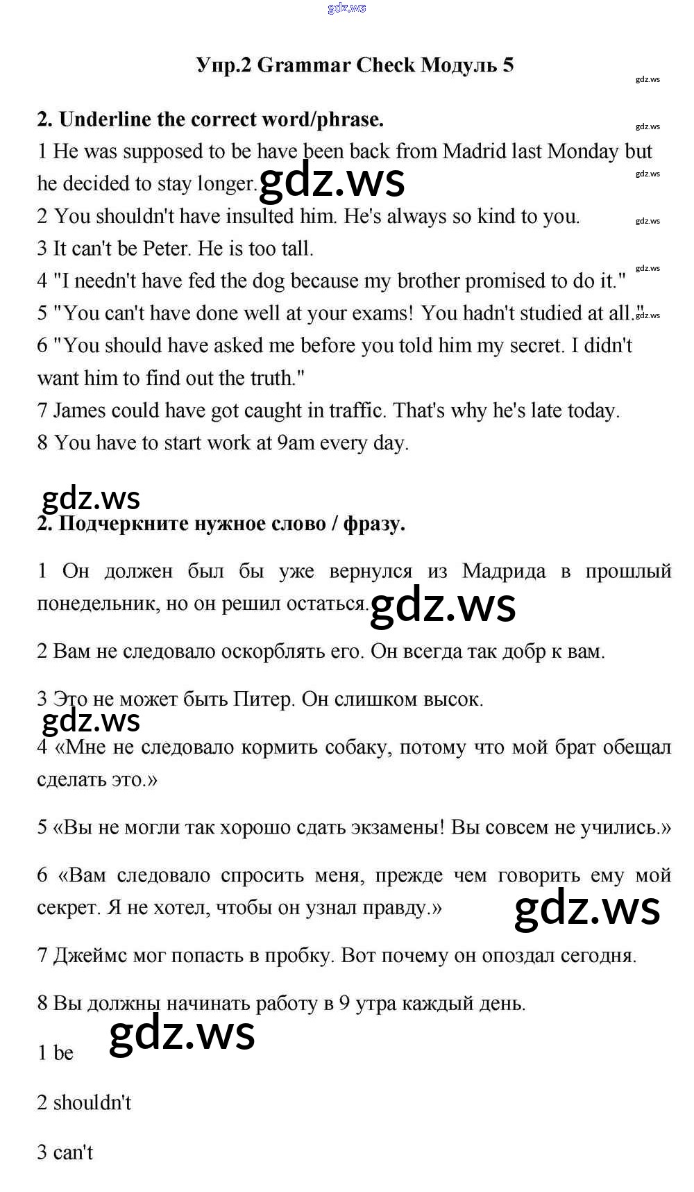 Готовый и полный ответ к Module 5 Grammar Check - Английскому языку 11 класс Эванс Учебник Spotlight ФГОС